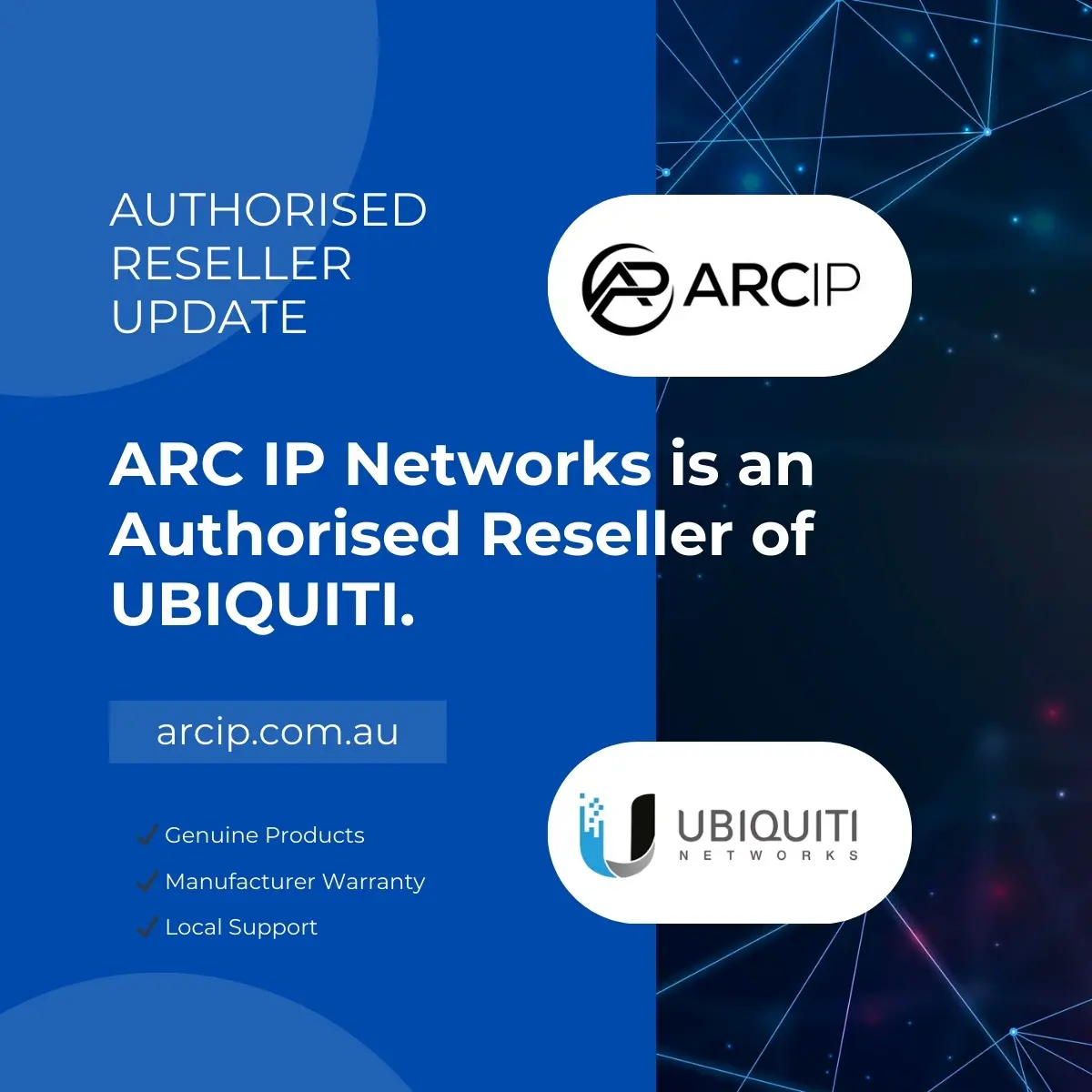 ARC IP Networks is an Authorized Reseller of Ubiquiti, delivering genuine products and local support to the Australian market.